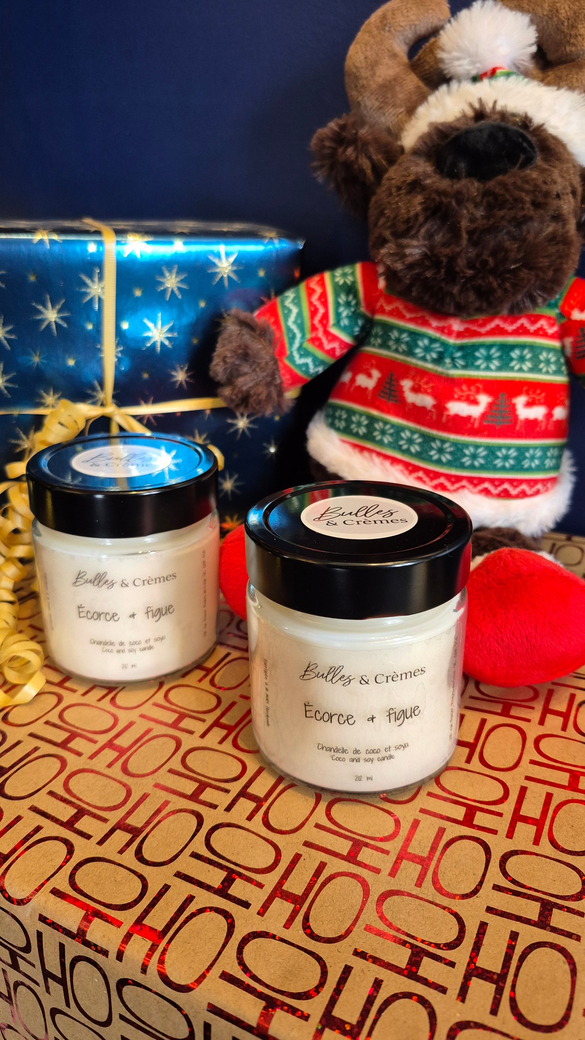 La chandelle a une belle mèche en bambou, ce qui la fait crépiter doucement une fois allumée. La cire utilisée pour la chandelle est une cire de coco et de soja.