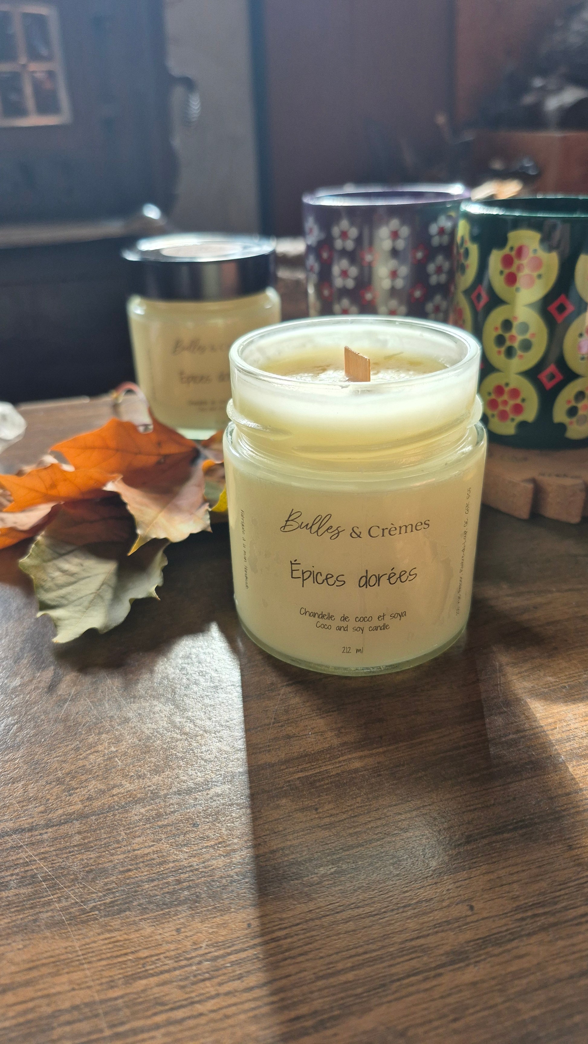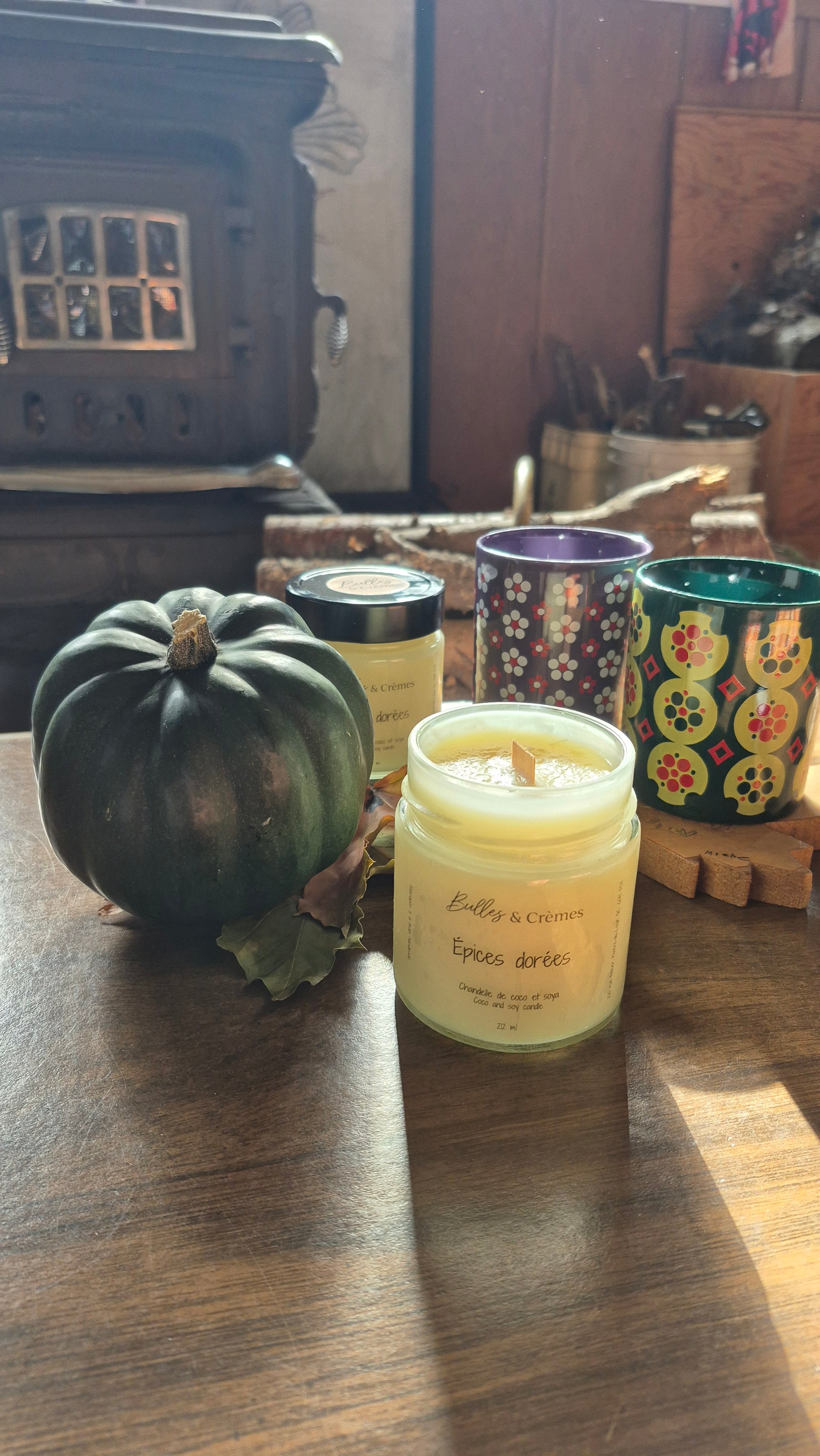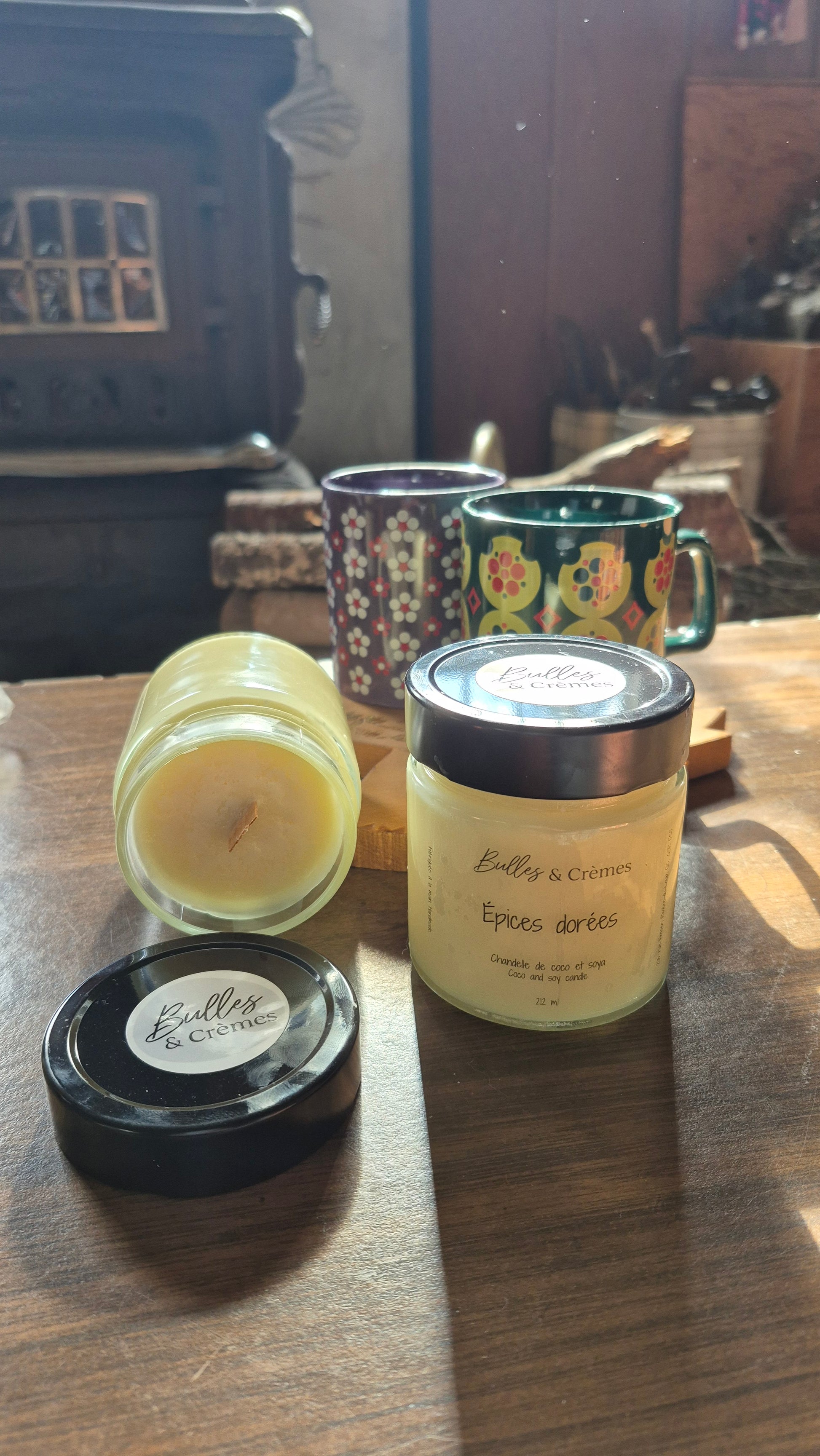 La chandelle a une mèche en bambou, c'est cette dernière qui fait crépiter doucement votre chandelle allumée.